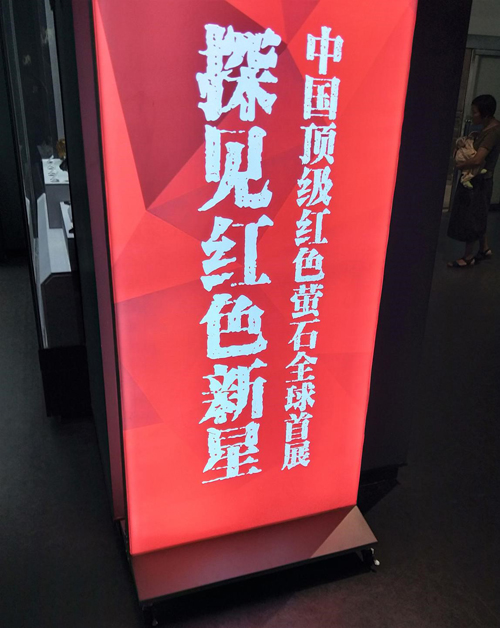 二,8月上旬,黃館長和我一起規(guī)劃國慶寶石展活動,他堅持說,要辦就要以紅色寶石為主題,迎國慶嘛,喜慶,要紅紅火火。他話音剛落,不到一個星期,8月15日,內(nèi)蒙赤峰石破驚天,世界礦物王冠上的瑰寶--極品紅色螢石擺脫了黑暗,君臨天下。我和朋友立馬飛赴赤峰,而后凱旋。